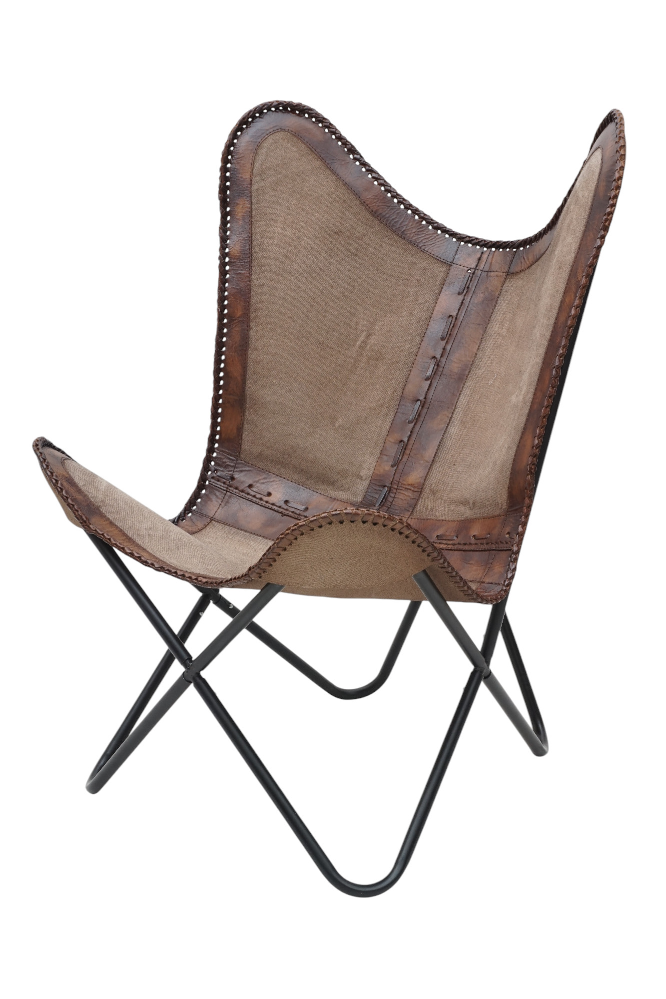The Rustic Canvas Butterfly Chair blends rugged charm with laid-back elegance. Crafted with durable canvas and rich leather trim, this lightweight yet sturdy chair brings a cozy, vintage vibe — perfect for both modern lofts and countryside retreats.